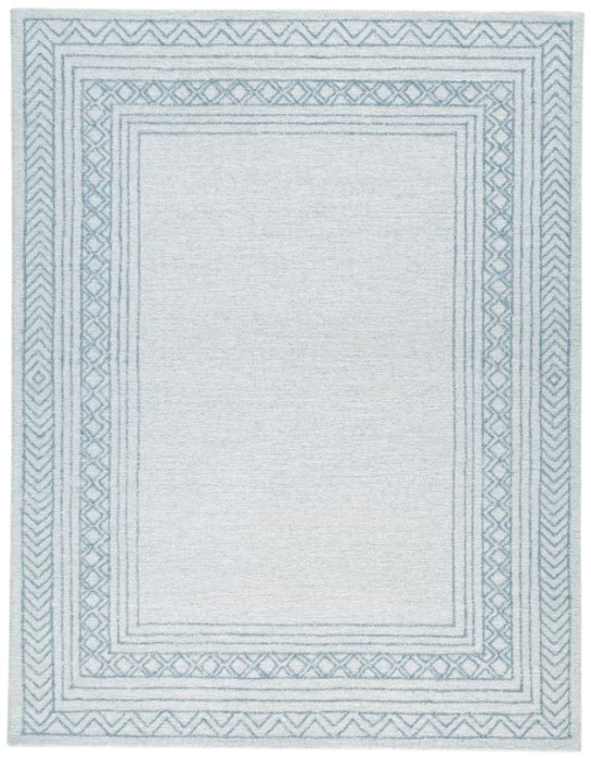 Soft, serene style. This area rug combines the comfort of hand-tufted wool with the soothing feel of coastal casual aesthetics. Its detailed border design, in a palette of blue, ivory, and gray, welcomes with relaxed character.Read More