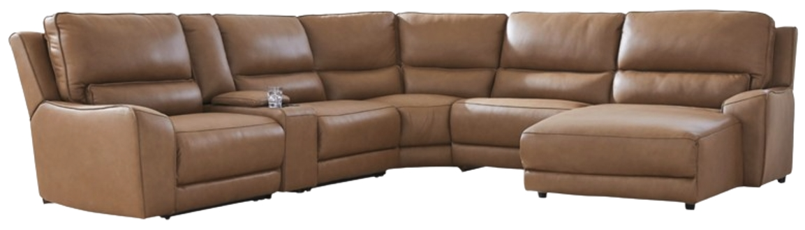Includes 6 Pieces: Left-arm facing power recliner, power armless recliner, armless chair, console with storage, wedge and right-arm facing power reclining back chaise