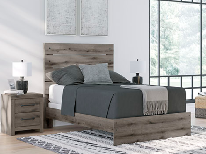 Combining a casual aesthetic with functional flair, this twin panel bed suits styles from rustic to industrial. The headboard's slatted panel design has an easygoing character that's sure to please. Dressed in a chic weathered gray hue, it brings a charmingly curated vibe to bedtime.Read More