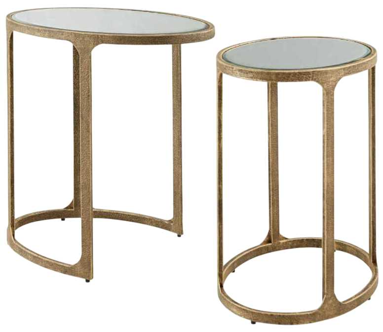 Looking to add a touch of traditional style to your space? You’ll delight in the classic appeal of this accent table set. Mirrored tabletops, supported by antiqued goldtone bases, bring light, dimension and glam character. A nesting design allows you to stage the tables solo or tuck them neatly together.Read More