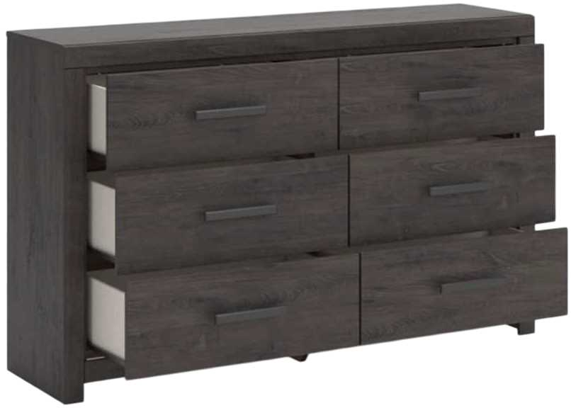 Designed with everyday style in mind, this dresser is a simply chic approach to modern living. A dark charcoal finish blends black and brown undertones, creating a versatile look that effortlessly pairs with your existing pieces. And for must-have function, six smooth-gliding drawers store clothes and linens in charming fashion.Read More