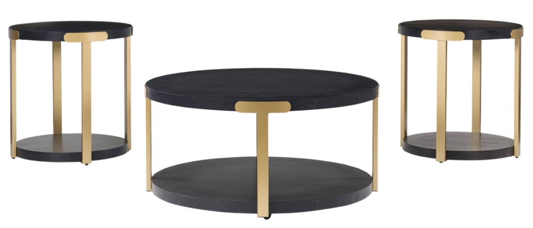 The Shylore 3-Piece Black Occasional Table Set with Brass Accents offers a perfect blend of elegance and charm. Featuring sleek black tabletops, this set is beautifully complemented by eye-catching brass accents, giving it a bold and sophisticated look.Read More