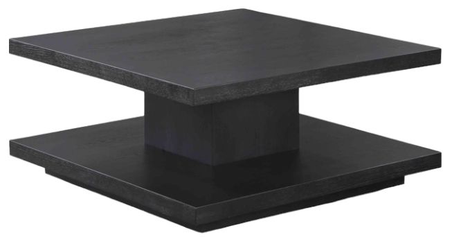 Crafted with oak veneers and Asian hardwood, this cocktail table features a sleek black finish and Craftsman-inspired design. A spacious square top and lower shelf provide ample room for décor or storage, while hidden casters add mobility, making it both stylish and functional.Read More