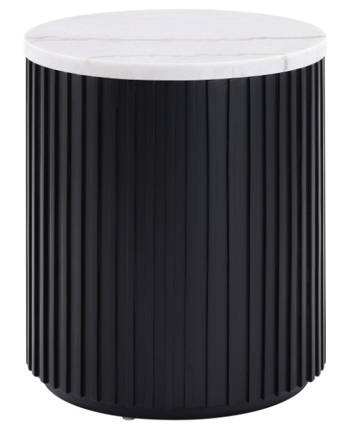 This versatile piece is ideal as a side table companion or at the end of a sofa, effortlessly blending style and functionality. With its reeded base and spacious round top, the Colvin End Table offers ample room for living room essentials, combining timeless design with practical utility.