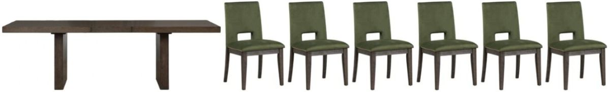 The sophisticated green velvet chairs offer luxurious, cushioned seating for maximum comfort. An easy-glide, ball-bearing mechanism ensures seamless table extension. Combining style, functionality, and elegance, the Evan Dining Set is perfect for any gathering.