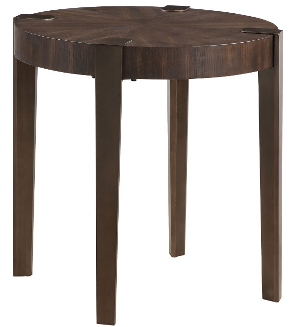 The Gracie end table is a stunning blend of modern industrial charm and elegant design. With a round, flowing silhouette and an espresso finish, it showcases oak veneers in a mesmerizing sunburst layup. The copper metal legs, geometrically shaped and exposed on top, add a bold, contemporary look.Read More