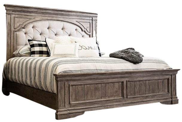 Vintage styling in a classically styled bedroom collection. Highland Park features a waxed driftwood finish complemented beautifully with a tufted fabric headboard. Storage pieces include chest, dresser, and nightstand to complete your bedroom.Read More