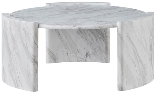 The look of real marble in a massive 42-inch round Cocktail Table, Merino offers a luxe look at a great price. The round shape of this table allows easy movement and access to Sectional or 2-piece upholstery sets. The faux-marble look adds a truly indulgent look to any living area.Read More