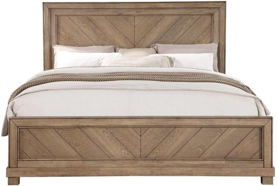 Relaxed and rustic, the Montana King bed brings casual style to today’s bedroom. A warm weathered sand finish complements most interiors with a primitive design that offers simple sophistication with details like a framed Chevron patterned Headboard and Footboard. Whether in the guest room or the Master Bedroom, Montana dresses up a bedroom without making it stuffy.Read More