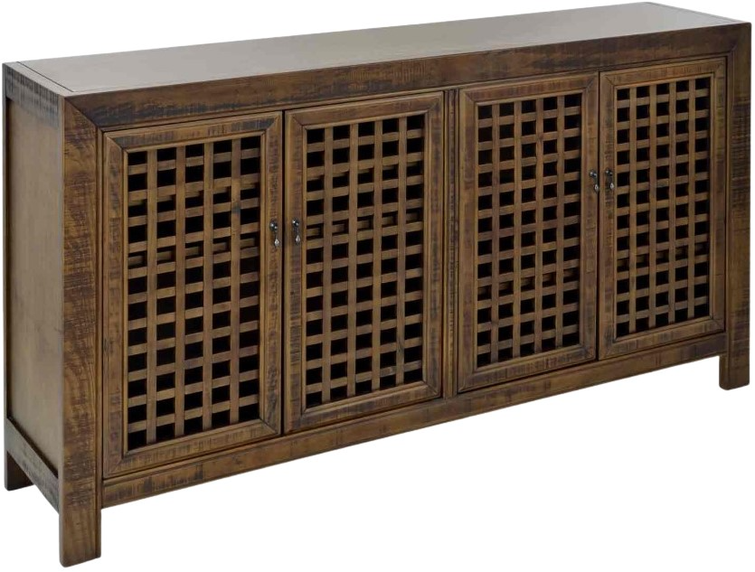 An Accent Cabinet with an heirloom feel and antique pie-safe design, the Rio 4-Door Cabinet is built for today’s home accents and electronics. The 70-inch long cabinet has four adjustable shelves and lattice door fronts for semi-open display or for electronic remote use.Read More