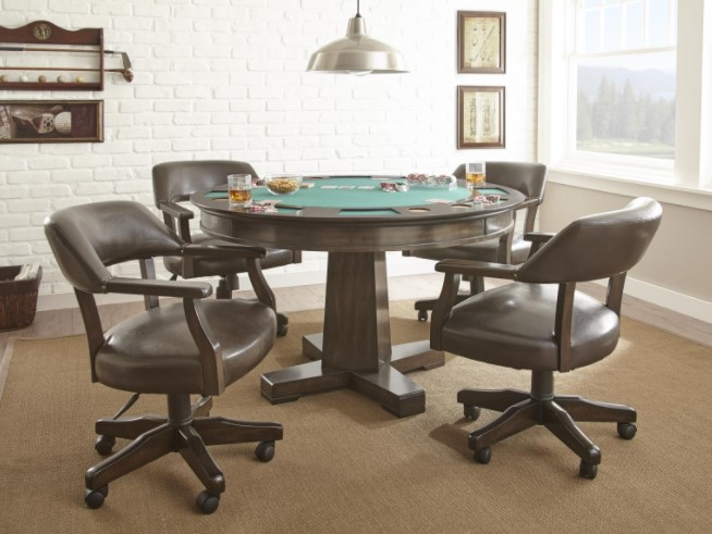 The impressive Rudy Dining and Game Table features a round reversible top for use as a dining or game table. The table top is constructed of beautiful birch veneers in a medium walnut finish over engineered wood.Read More