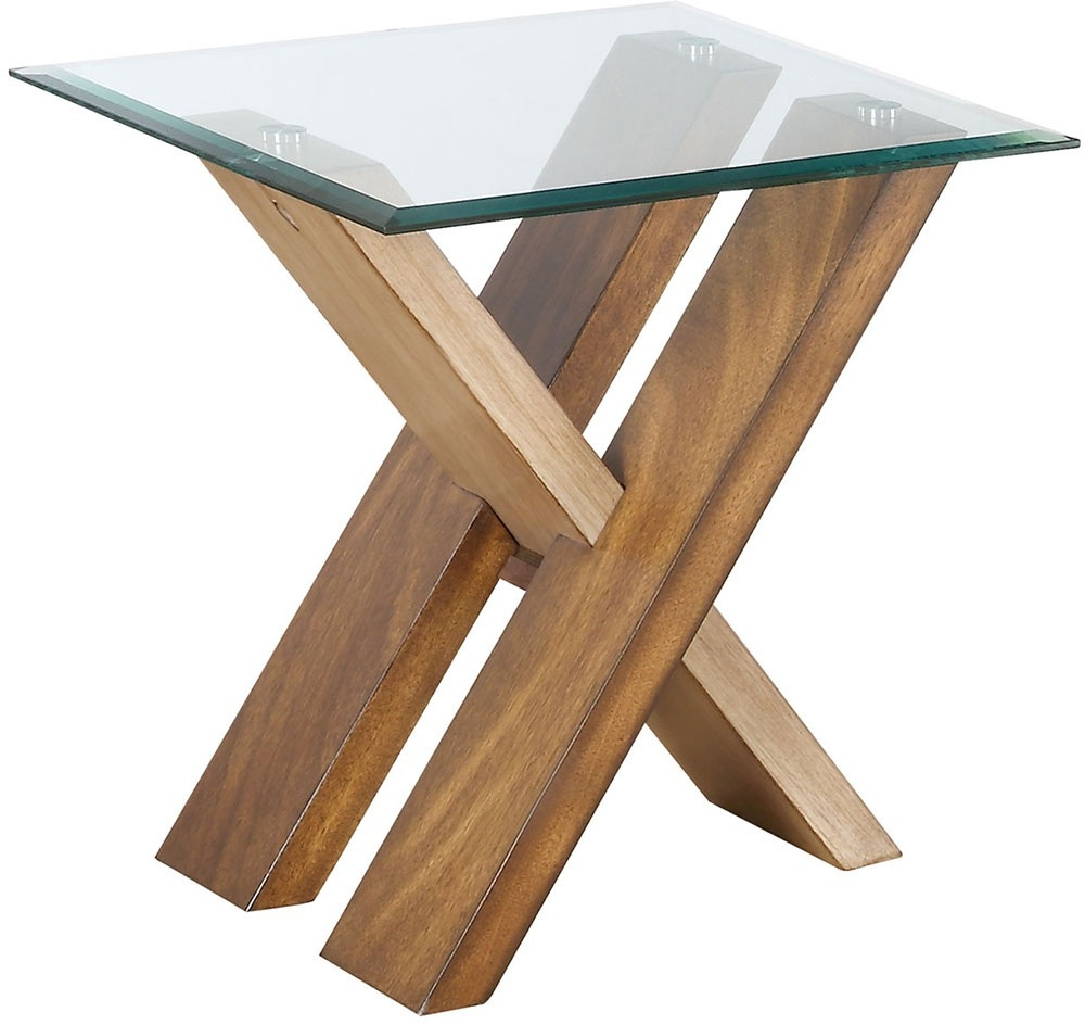 The delightful Tasha end table. Is a unique, modern accent piece that will brighten your home. A beveled glass top rests on a cross tie wooden base in a contrasting natural and deep cherry finish making it a stylish end table.Read More