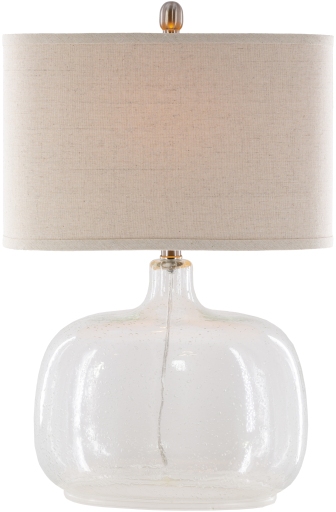 Surya Bentley Lamp features a clear translucent glass body, beige linen shade, and 6-foot cord.Read More
