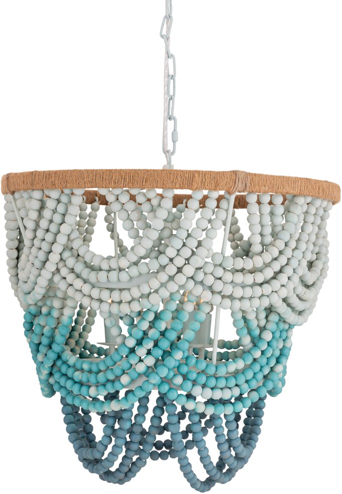 Dress your room with this unique take on the classic chadelier. Crafted of iron and with natural wrapped details and cascading rows of ombre beads, the Jade chandelier is sure to elements of texture and Bohemian style to your space.