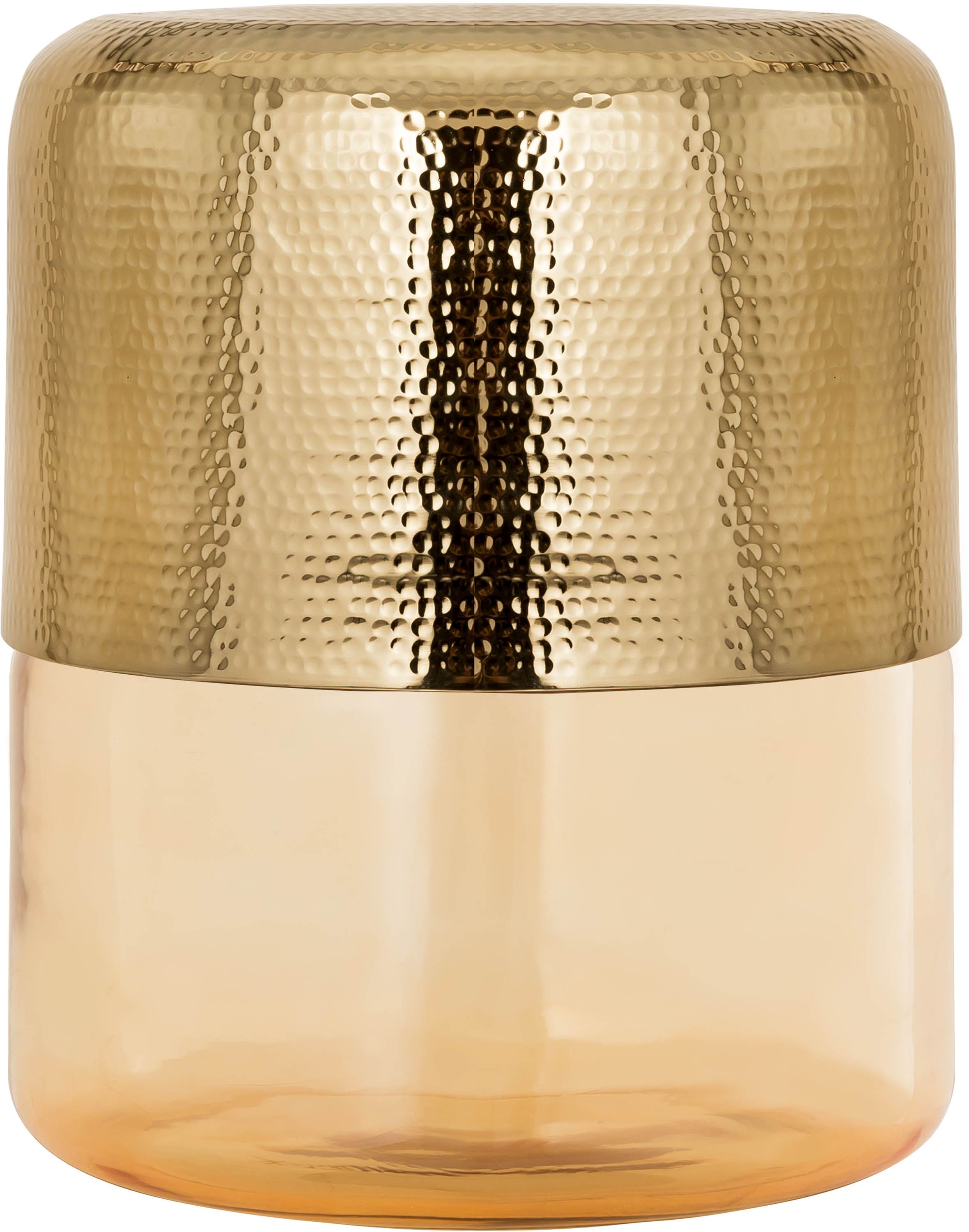 Hand-hammered design and a burst of translucent Amber come together in perfect harmony to create the Kolla side table.