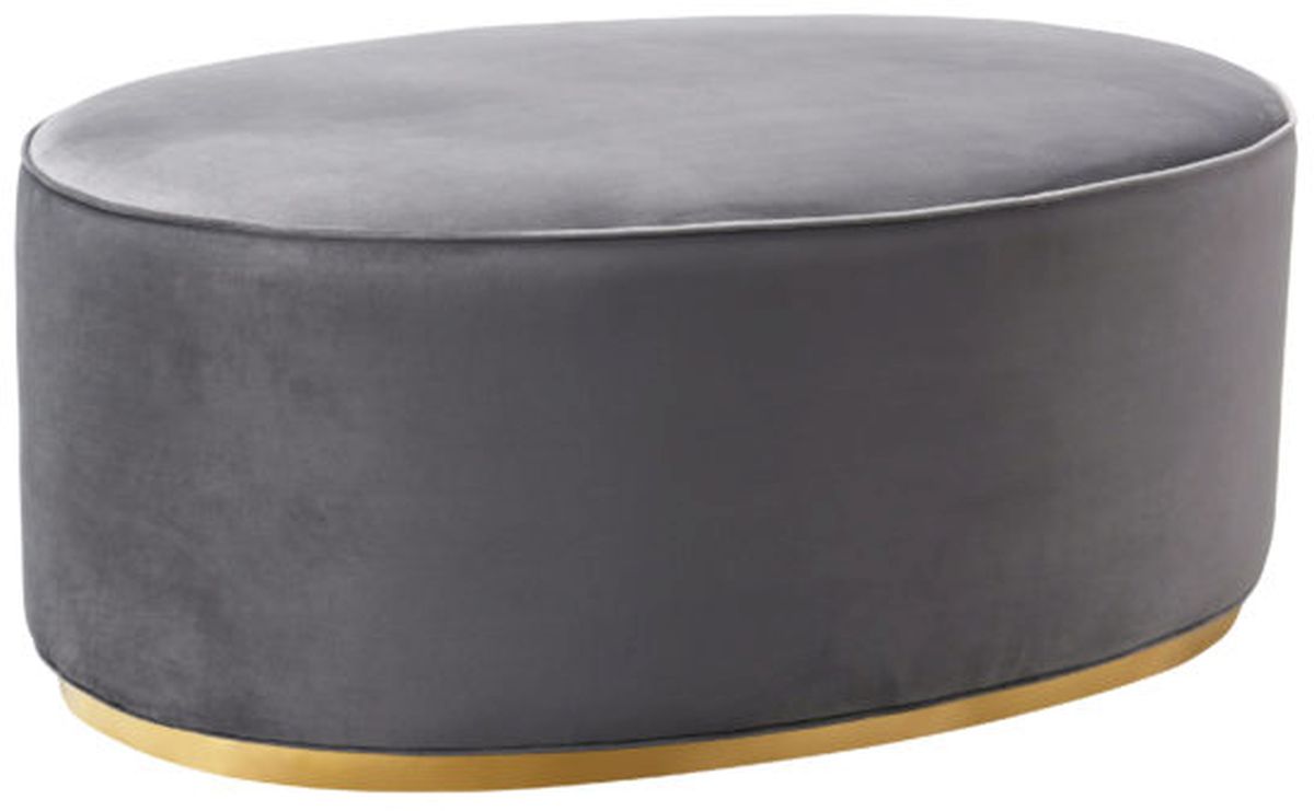 Offering a fresh, contemporary style this large ovaL-Shaped ottoman features a glimmering gold steel base and is enveloped with sumptuous velvet upholstery.Read More