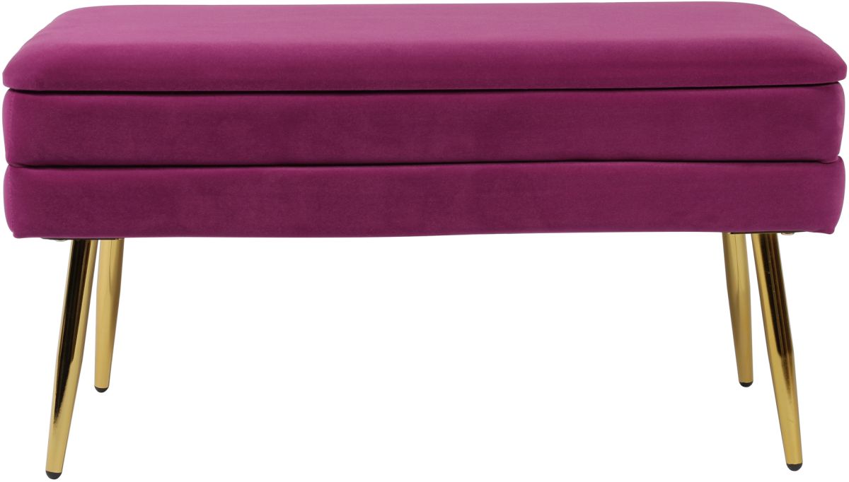 Add a touch of sophistication with the functional and ultra chic Ziva bench. Featuring channel tufting, plush velvet upholstery, polished gold legs and ample storage space to keep your room looking neat and stylish. Available in four exciting color options.