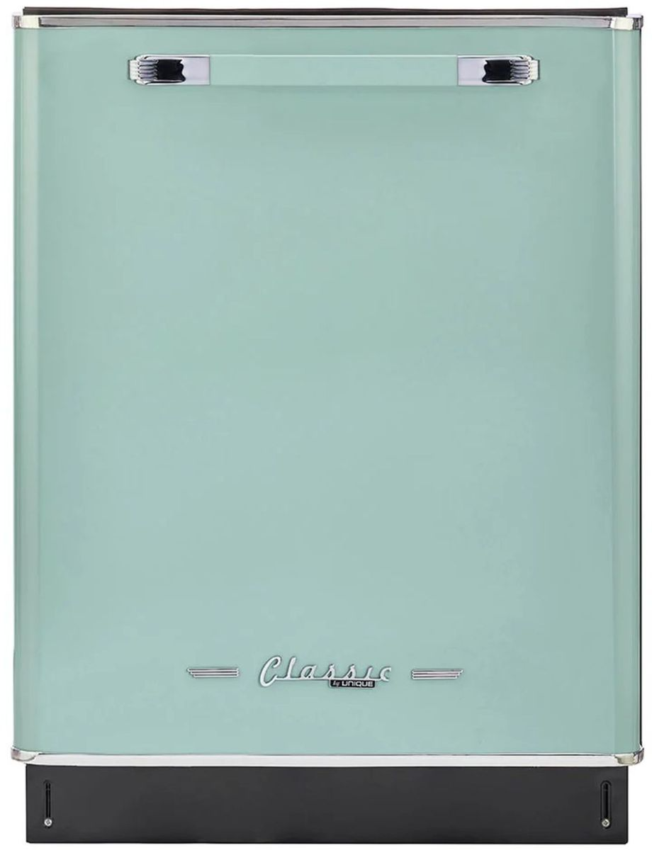 The 24” Unique Classic Retro Undercounter Dishwasher transports you back to the ‘50s with its iconic retro design and chrome finished accents. Extremely quiet Unique dishwasher allows for continued cleaning while entertaining. Multiple wash cycles make clean-up easy for any small or large task!Read More