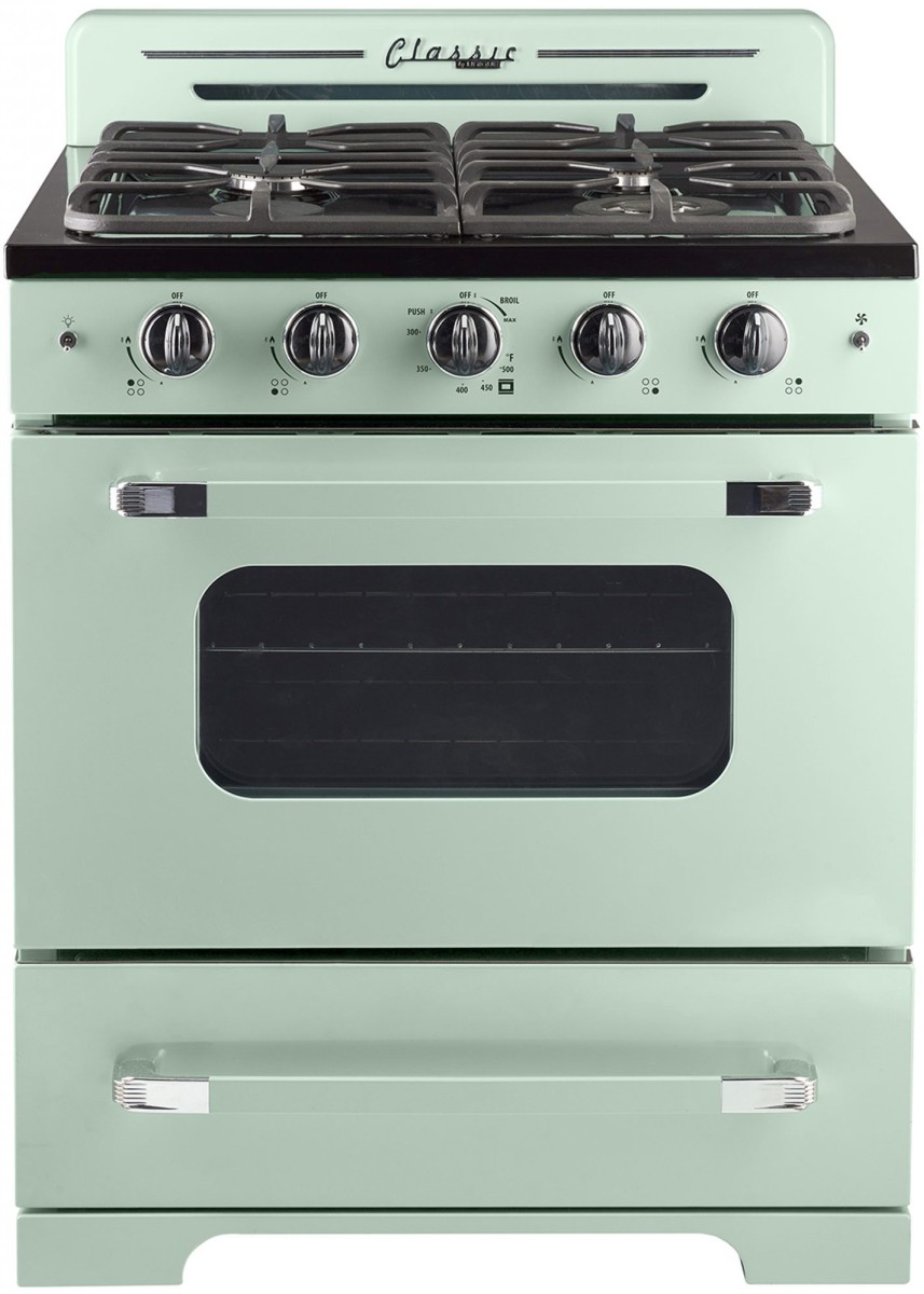 With its iconic retro look and throwback chrome accents, this 30” Classic Retro stove is the perfect addition to any kitchen design that harks back to the 50s. The simple, effortless controls are easy to use, quick to keep clean, and add an extra retro touch.Read More