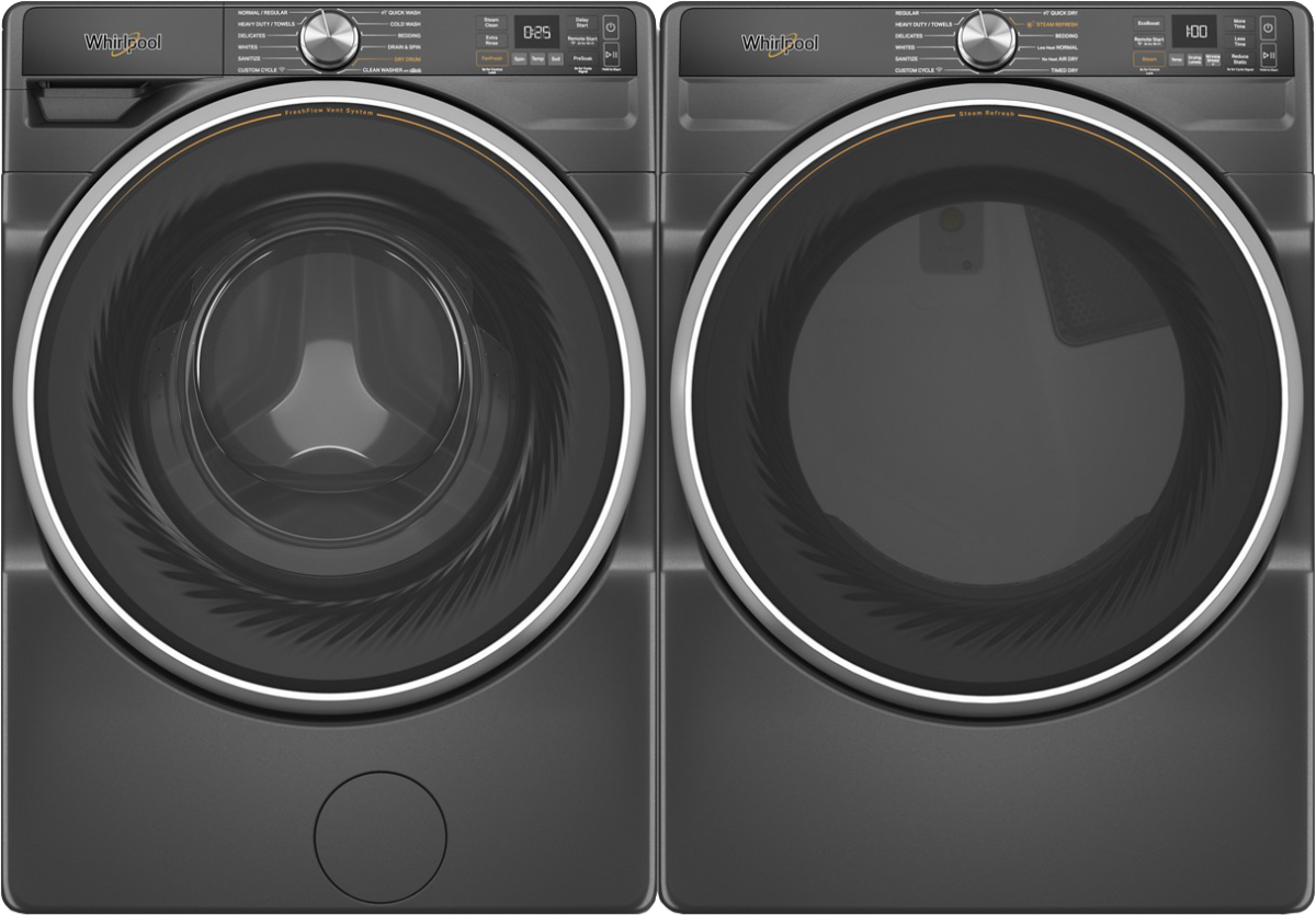 Release wrinkles without rewashing using the Steam Refresh Cycle in this front load electric dryer. It has smart features like AI sensors that automatically adjust dry time, and remote control with the Whirlpool® App
