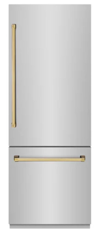 Luxury isn’t meant to be desired - it’s meant to be attainable. The ZLINE Autograph Edition 30 in. 16.1 cu. ft. Built-In Bottom Freezer Refrigerator with Water Dispenser and Ice Maker in Stainless Steel with Graphite Gray Interior and Polished Gold Accents (GRBIVZ-304-30G)Read More