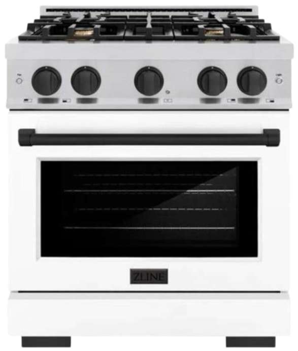 Luxury isn’t meant to be desired - it’s meant to be attainable. The ZLINE Autograph Edition 30 in. 4.2 cu. ft. Select Gas Range with 4 Burner Cooktop and Convection Gas Oven in Stainless Steel with White Matte Door and Matte Black Accents (HGRZ-WM-30-MB)Read More